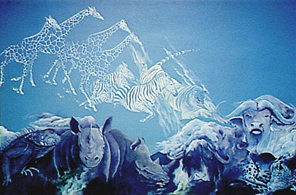 Tromping, Stomping, Thundering through, Hooves of the wolly beasts Stampede the blue! I lie on my back and the Skynimals parade, the Skynimals, the Skynimals, In every size and shade!